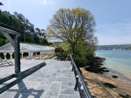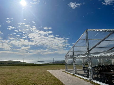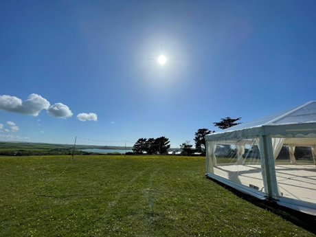 Our beautiful marquee ready for decorations and how about those incredible views over East Portlemouth, Kingsbridge, South Devon