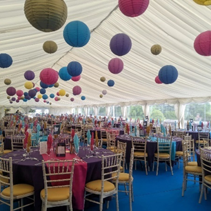 Why not add a bit of glamour to your marquee with chandeliers, great for creating a stylish traditional wedding marquee or for adding a bit of elegance to the roof space in a clear roof marquee.