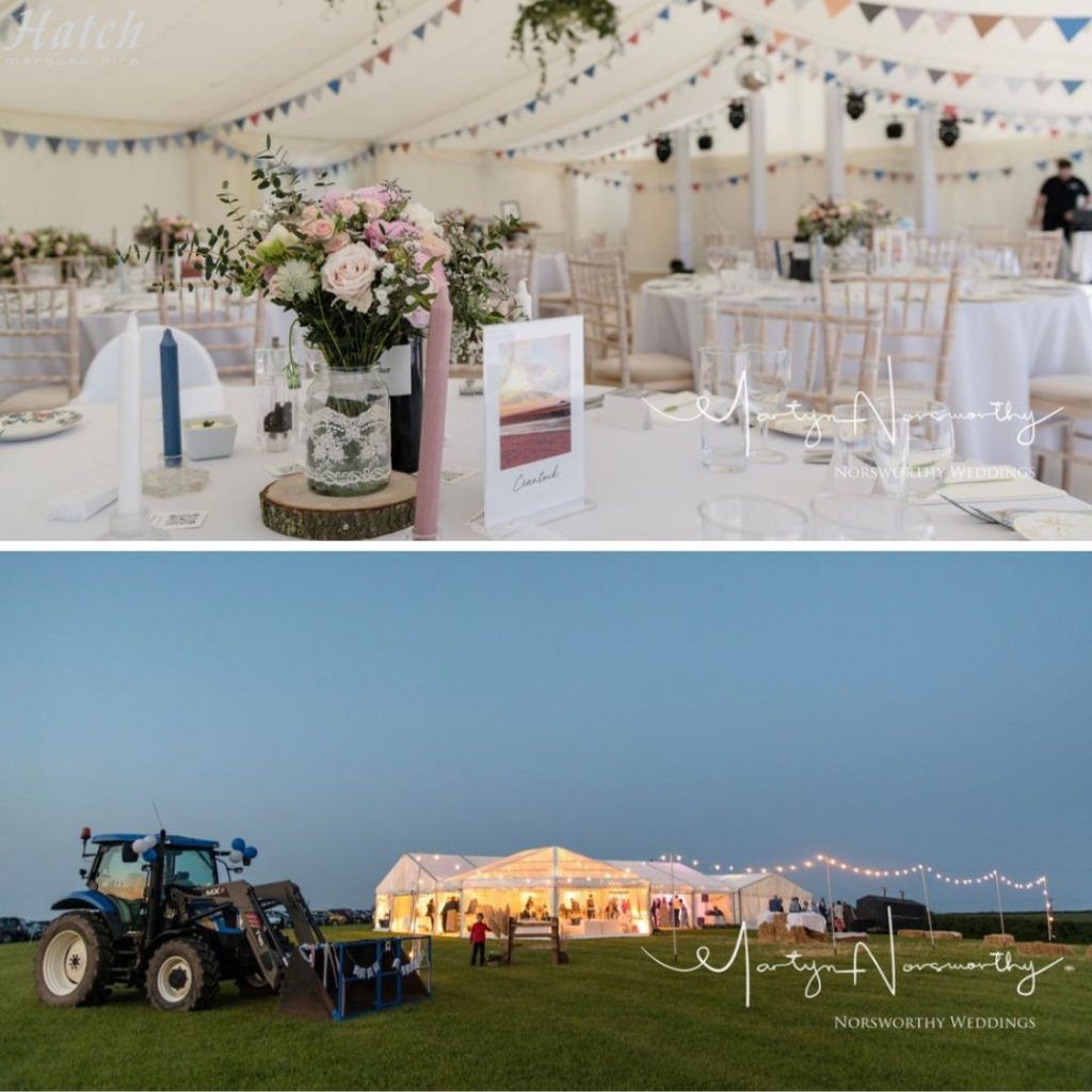Carswell Farm, tucked away on the South Devon coast, is a unique location for a field marquee wedding on a specially leveled site. Set in an Area of Outstanding Natural Beauty, the countryside and coastline is spectacular with stunning sea views and secluded beaches – perfect for photos!