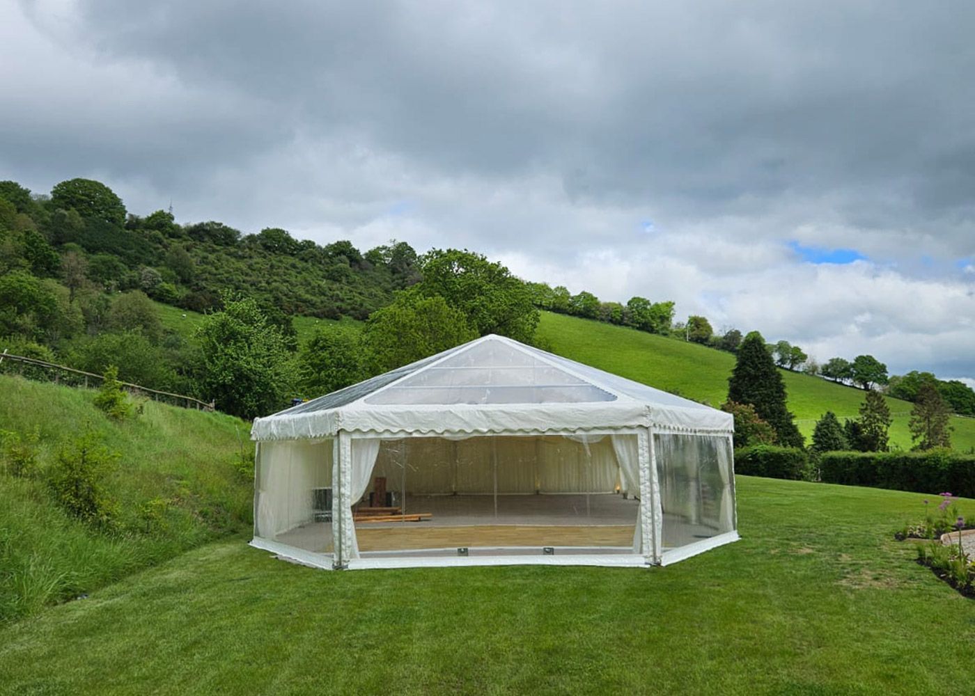 You can have exclusive use with onsite and outside ceremony areas. Holwell Farmhouse has extensive private grounds, parking, a marquee area and glamping space.