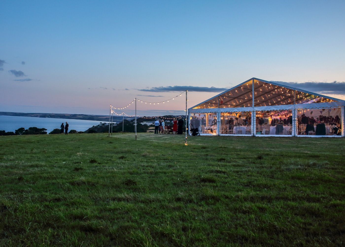 There is plenty of scope, at this open field venue, to create a wedding marquee that suits your ideas for your day. Clear window walls and clear roofs will make sure that the scenery remains your backdrop from day to evening light. There is ample parking available and camping is allowed by separate arrangement with the land owners – perfect if you are looking for a festival style wedding.