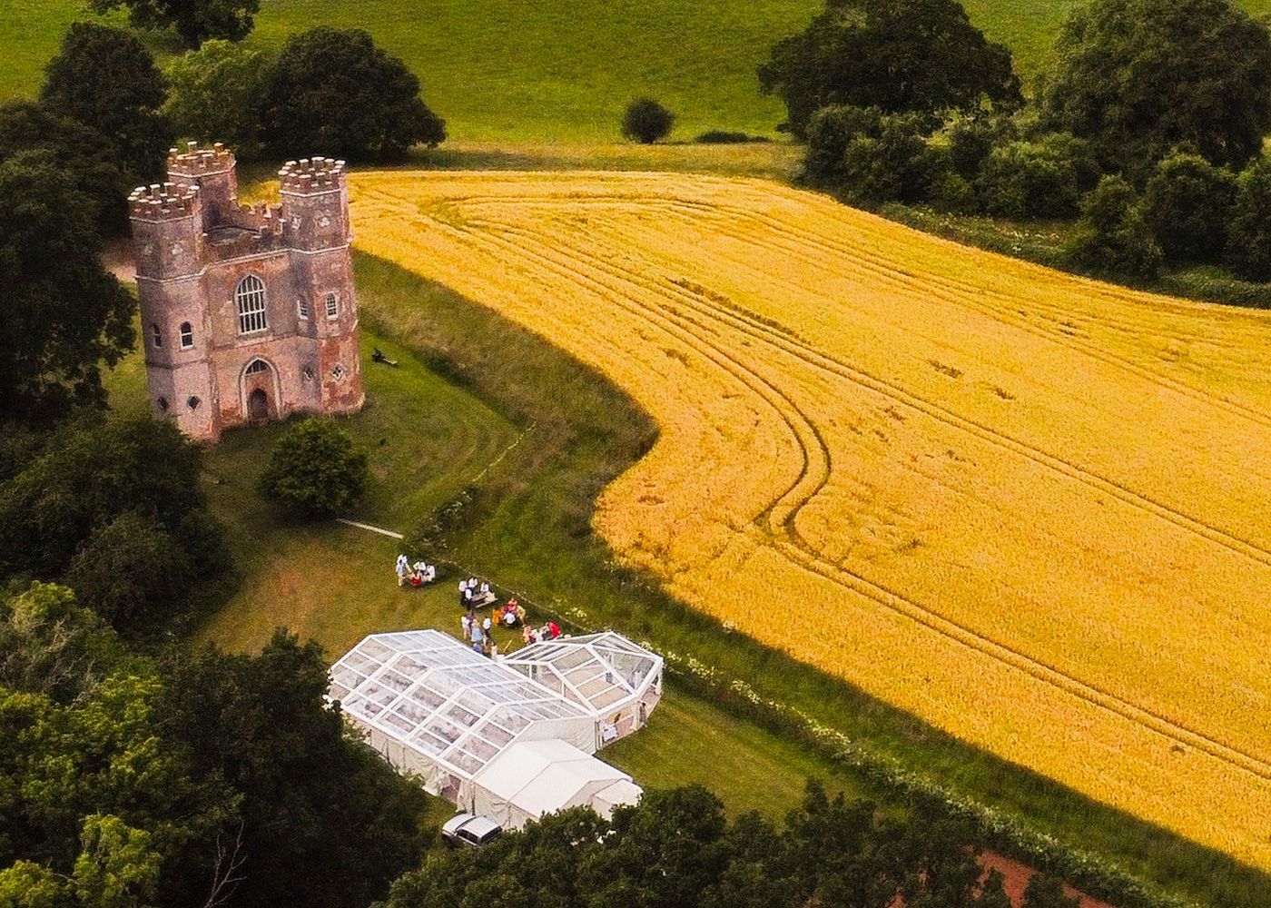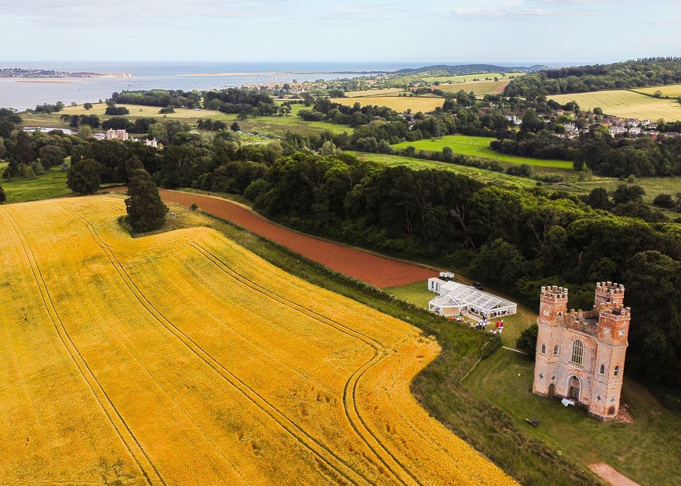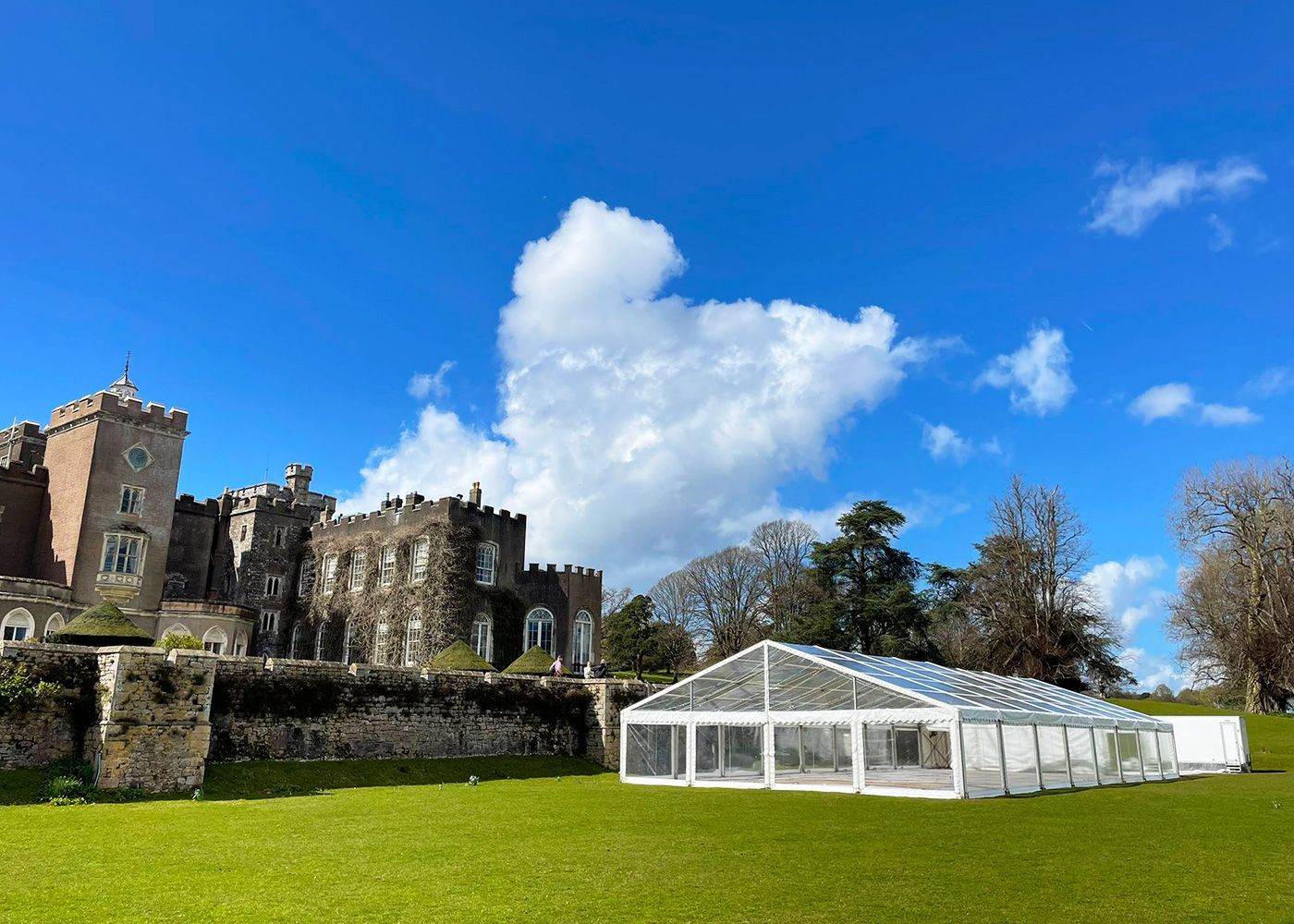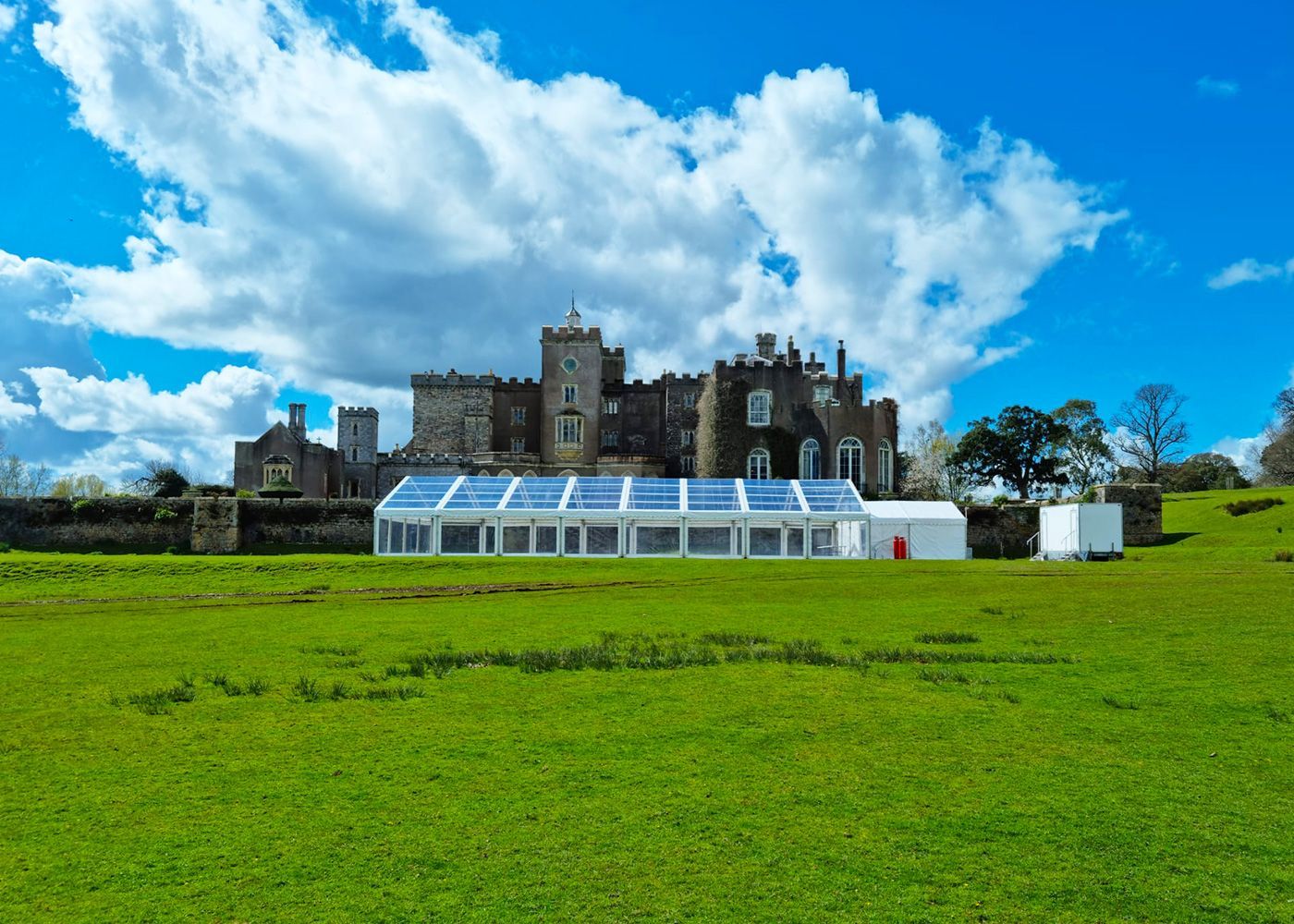 Powderham Castle Gardens – in front of Powderham Castle we can install your marquee with the most amazing views of the castle, especially in a fully clear marquee, let the outside be part of your day!