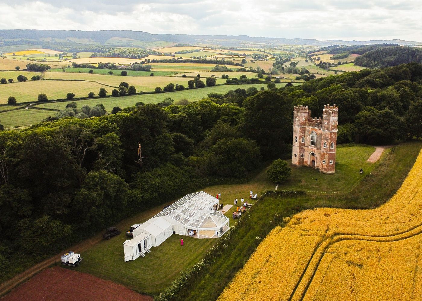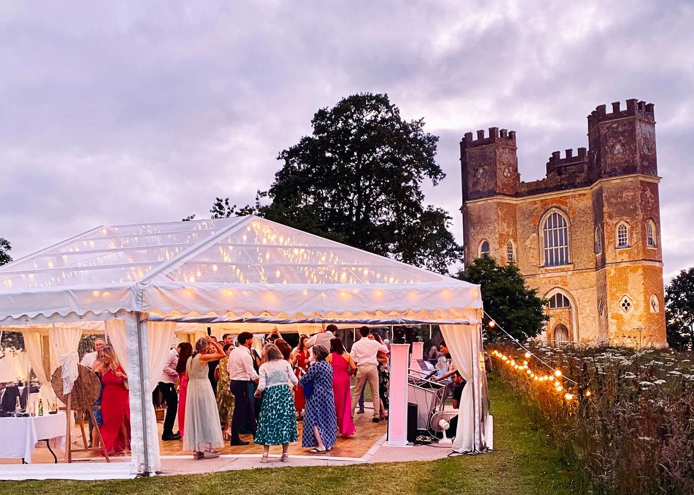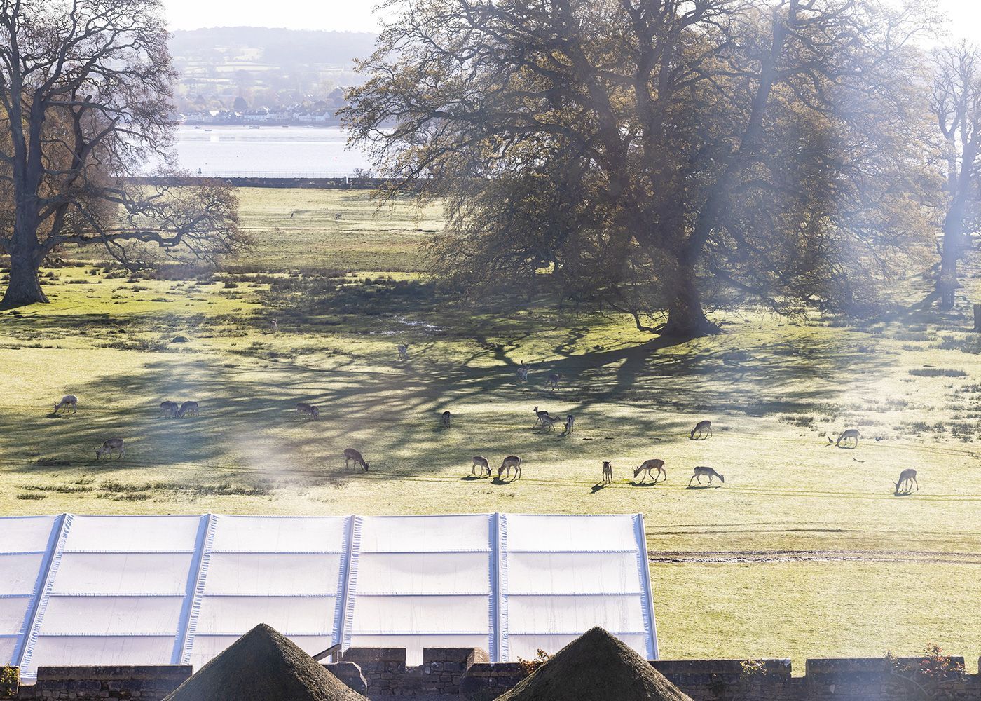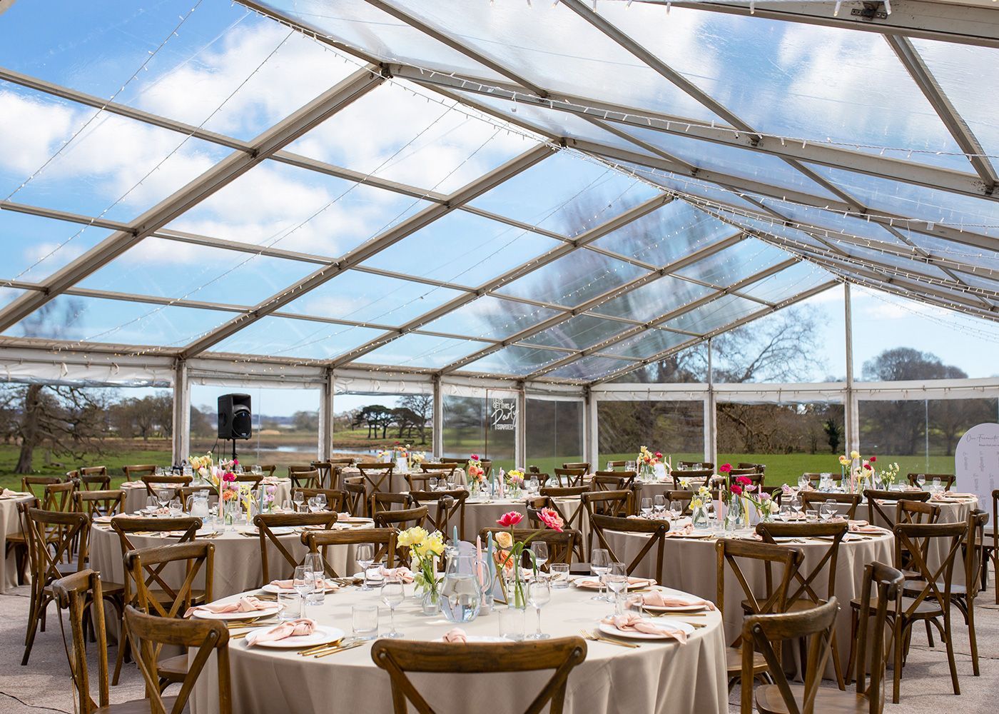 Powderham Castle Gardens – in front of Powderham Castle we can install your marquee with the most amazing views of the castle, especially in a fully clear marquee, let the outside be part of your day!