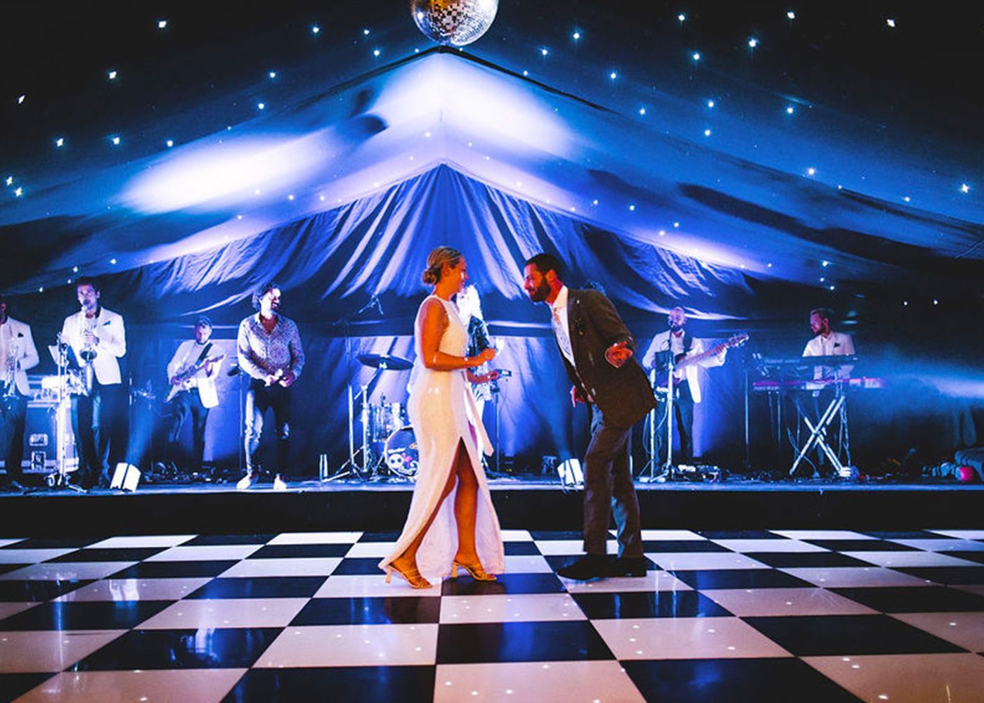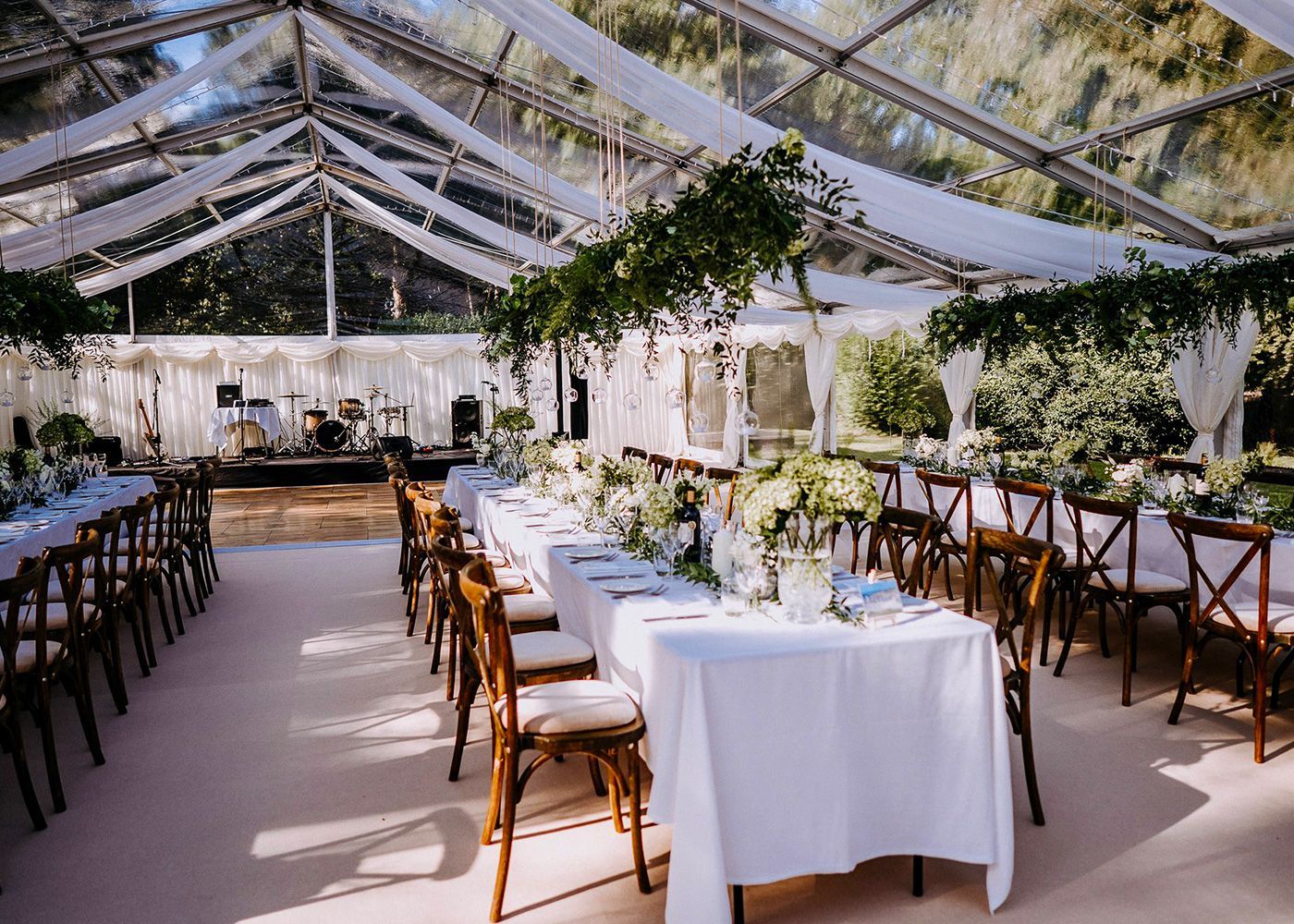 Why not add a stage area next to the dancefloor for bands / entertainment, a great addition to ensure your party is in full swing.