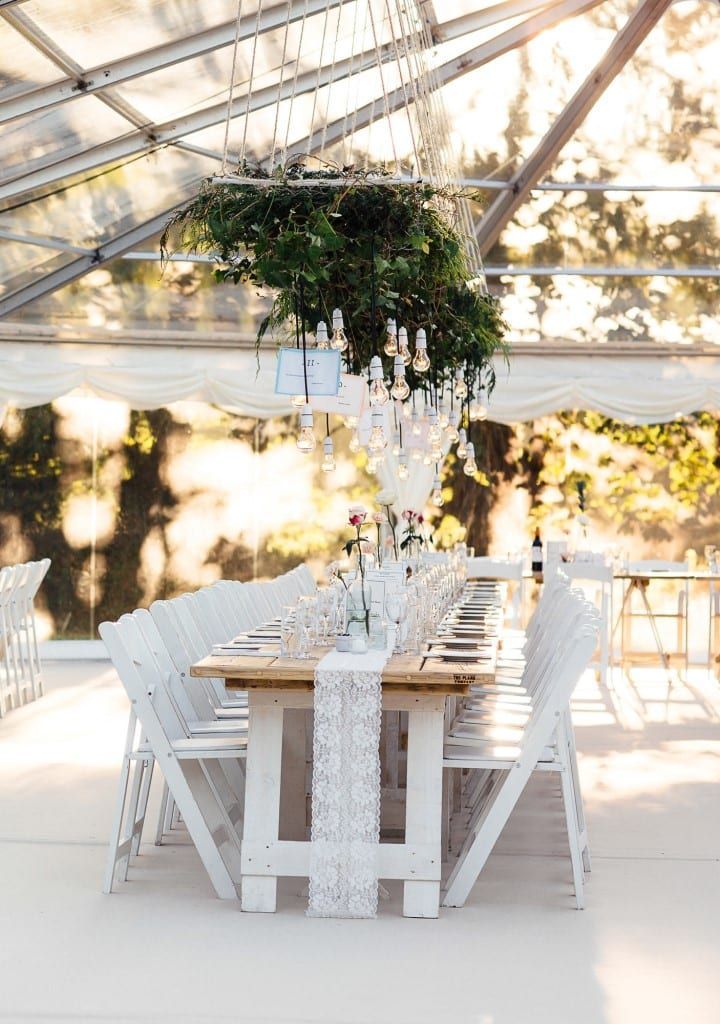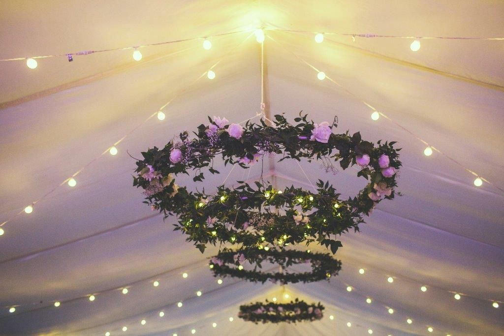 Hanging Greenery & Lighting: for total ‘wow’ factor your lighting can get completely theatrical and look simply amazing. Combing foliage on a suspended structure with hanging lights creates a spectacular feature to your marquee by day and night.