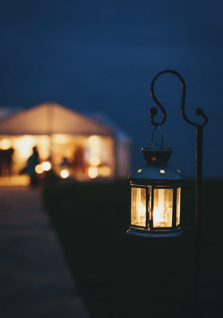 Don’t forget to think about lighting outside your marquee, for both practical and decorative reasons. You can really add to the ambiance by lighting an outdoor area or help welcome evening guests by lighting a pathway.